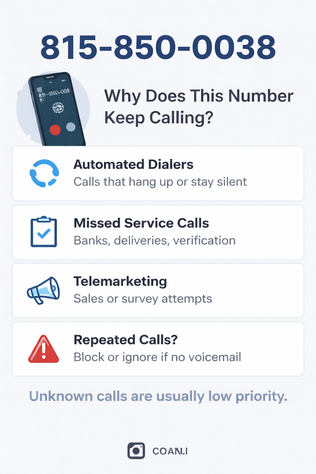 When a number like 8158500038 calls without context, the uncertainty matters more than the digits themselves. Phone numbers don’t carry intent on their own. Meaning comes from patterns: timing, frequency, whether a message is left, and how the call behaves when answered.